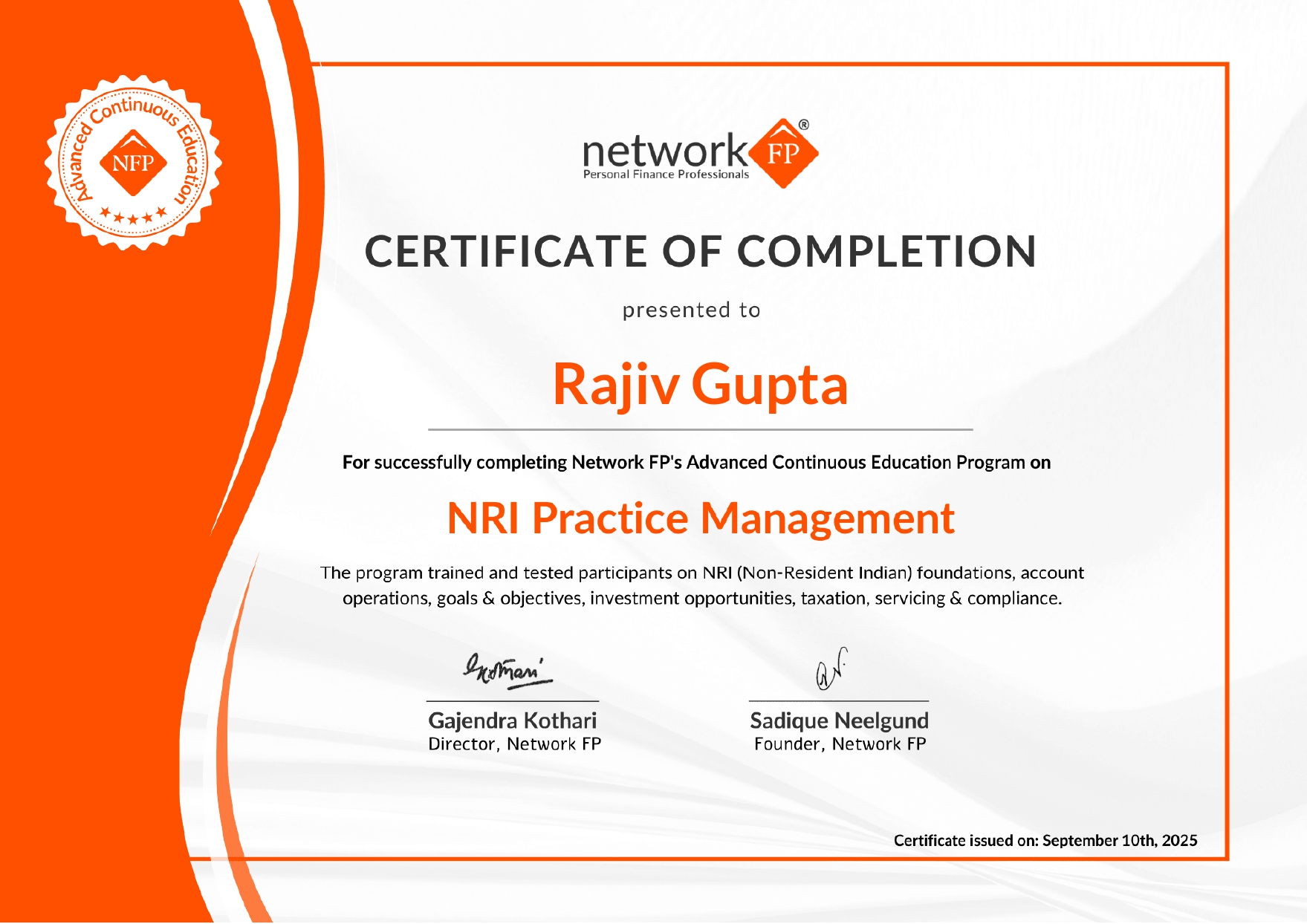 I embarked on the journey to help people understand about savings and investments over two decades ago. It all started in November 2002. I left my family business to start this journey. The Government had just opened financial services sector in 2000. I had joined TATA AIG Life insurance, which now is TATA AIA Life, as an insurance advisor. I began to learn about the world of investments and insurance. Through insurance, I learned in detail about risk. Soon after I started to learn and enhance my knowledge about savings and investments. I then, completed my MUTUAL FUND DISTRIBUTOR EXAM and became a mutual fund distributor. This further helped me assimilate more knowledge on bonds, debt, fixed deposits.
